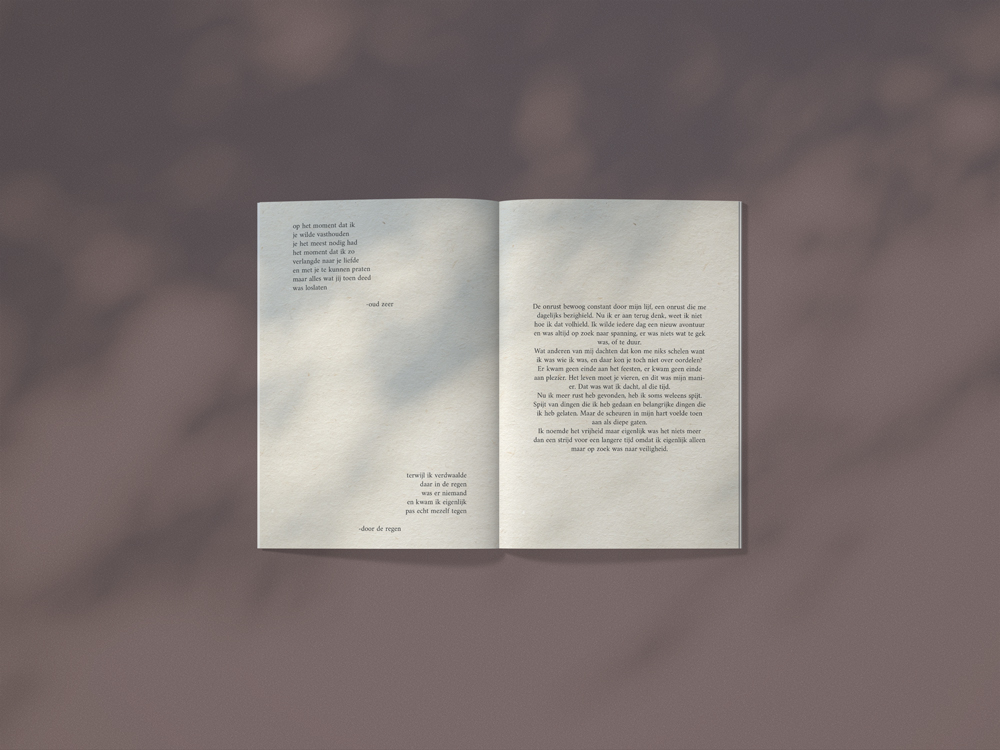 Zacht Gebroken neemt je mee in de twee thema’s: Rauw en Teder. Een boek over pijn, verdriet en afscheid en over hoop, liefde en verwondering. Geschreven in een jaar waar alles even op zijn kop stond. Maar telkens beetjes van mezelf weer terugvond.